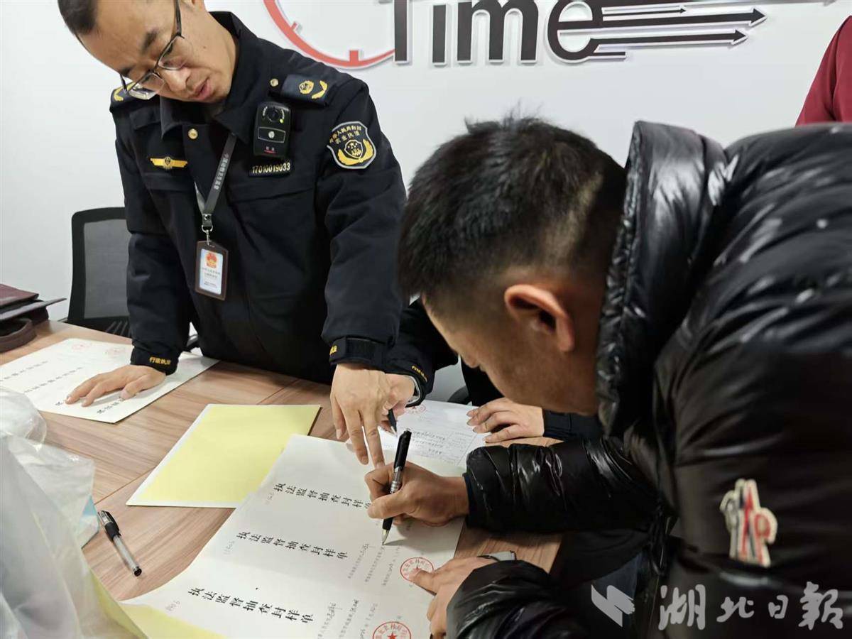屠宰场负责人在封样上签字。湖北日报全媒记者杨然 摄