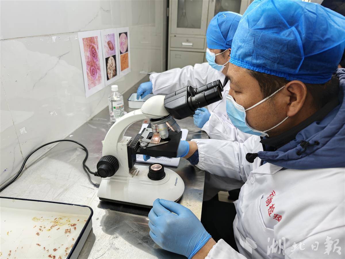 检验猪肉是否被旋毛虫感染。 湖北日报全媒记者杨然 摄