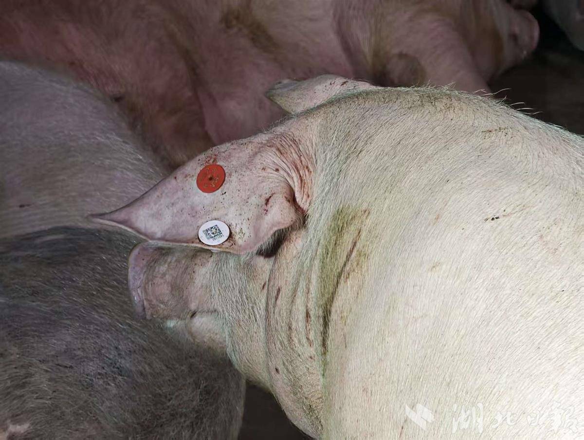 每头生猪都戴有可追溯信息的“耳标”。 湖北日报全媒记者杨然 摄