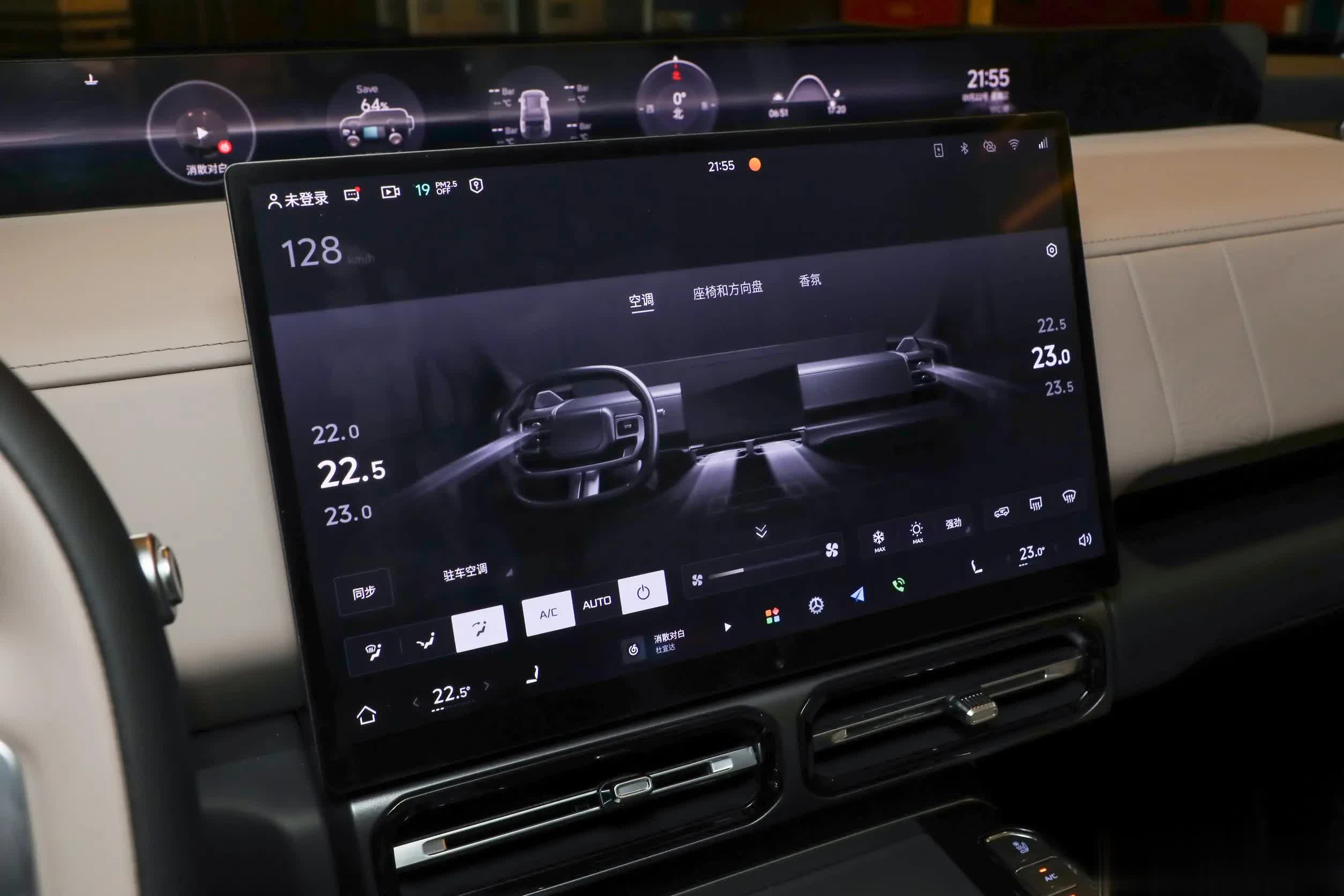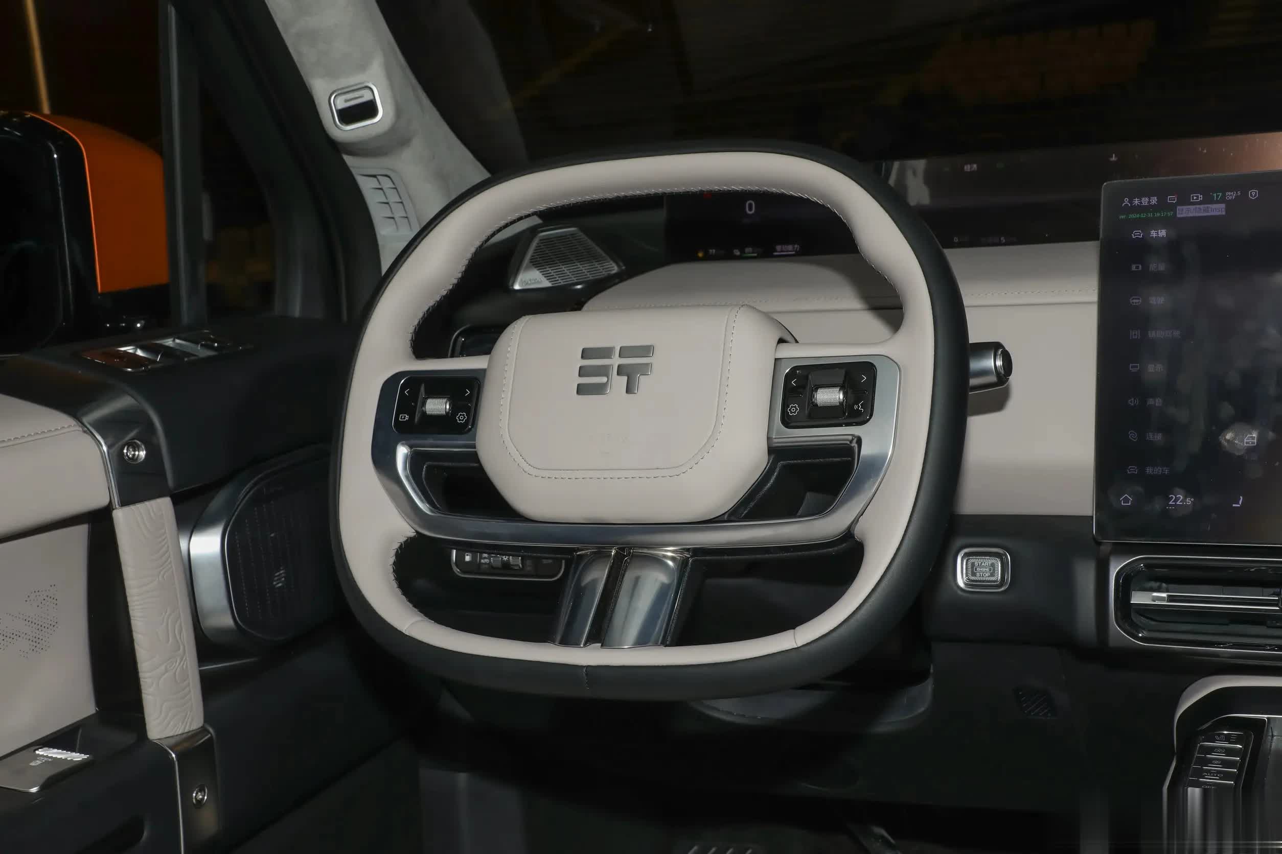 座椅布局方面,纵横G700采用2+2+2的六座布局,第二排为独立座椅设计,第三排空间宽裕程度也很可观。至于内饰,毫无疑问显然不会让人失望,毕竟国产新能源车总能在内饰设计这块带来意外之喜。双拼色的设计看起来比较高端,大范围采用真皮包裹,方向盘采用上下平底三幅样式,运动感扑面而来。中控区域则嵌入一块15.6英寸悬浮屏,并结合华为乾崑智驾ADS 3.0、纵横天巡还有方舟技术等前沿配置。值得一提的是,纵横G700还有原地掉头功能,并且还兼备一定涉水的能力,再加上非承载式车身搭配三把锁,让越野能力具备与比亚迪仰望U8一较高下的潜质。