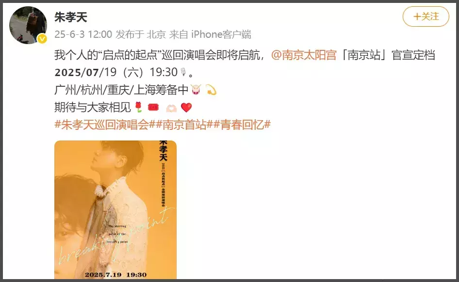 可能是朱孝天自曝患病惊到网友,有不少网友担心他目前身体状态,朱孝天表示自己还是会给大家的青春做个“售后”的,会尽量去促成F4巡演的计划。据悉,朱孝天最近要在南京开启自己的个人巡回演唱会,但也称自己要“退休”了。