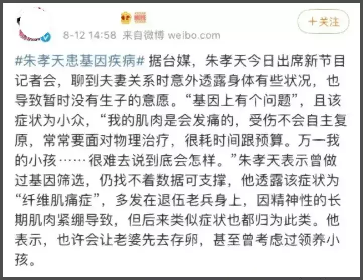 谈到自己46岁还没要孩子的问题,朱孝天直言到了自己这个年纪如果要孩子,可能还没和孩子熟悉几年,自己就要走了,朱孝天还担心自己的病会影响生孩子。