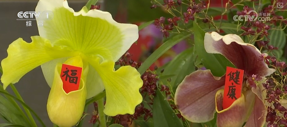 在北京花卉交易中心,各色年宵花争奇斗艳。其中,新品兰花“兜兰”十分惹眼,独特的兜形花瓣里,被放入“顺遂”“健康”的祝福卡片,寓意“兜住顺遂”“兜住健康”,祝福满满,年味十足。
