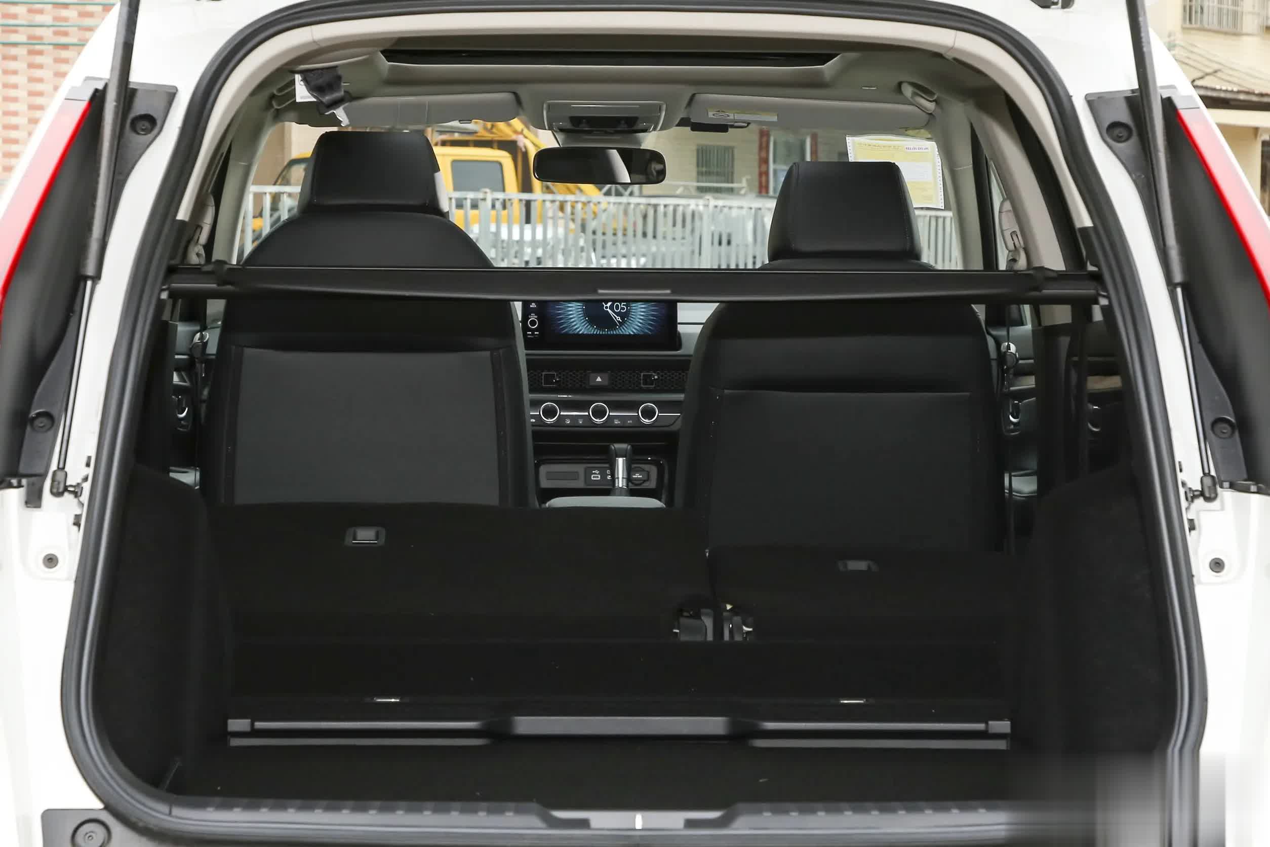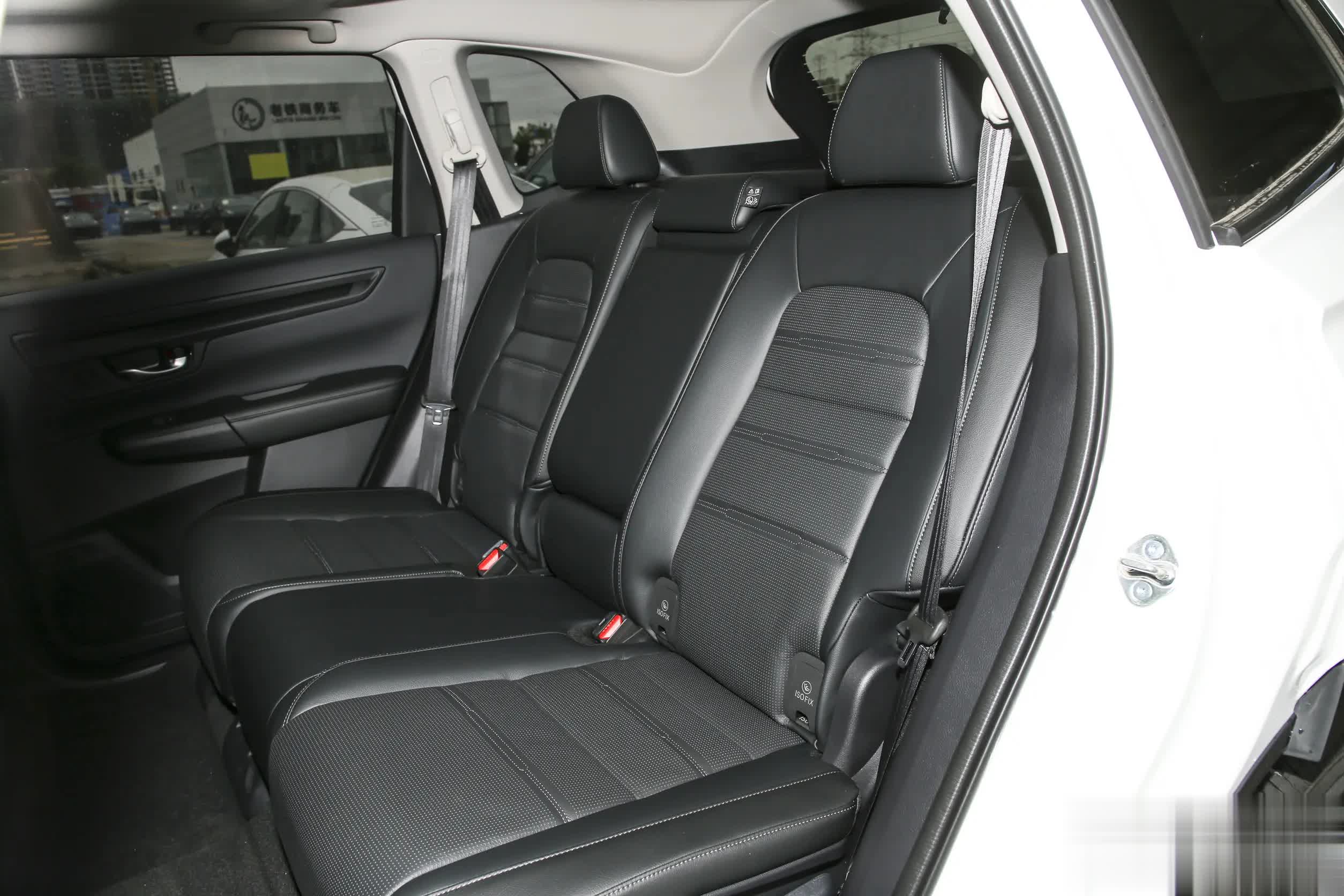 值得一提的是,CR-V还有七座版,但轴距刚超2米7,选七座并不是很合理,多数人更青睐五座车型。实际体验下来,身高1米73的乘客坐到前排,头部空间大约一拳两指,后排空间类似,腿部超出近三拳。中间位置较鸡肋,头枕小且支撑差,坐垫和靠背偏硬还有凸起,影响舒适度,载满时坐在中间不是很舒适,应急或小孩出行还能考虑一下。两边座椅不错,贴合感好承托也好,配合全景天窗,视野明亮通风佳,舒适度让人满意。